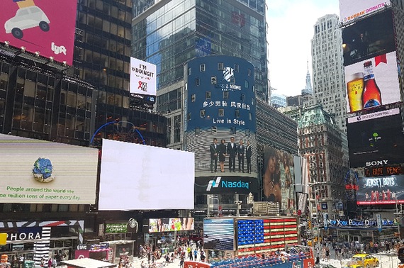 美國(guó),紐約,曼哈頓,時(shí)代廣場(chǎng)(Times Square),美國(guó)東部時(shí)間7月25日清晨,一家中國(guó)企業(yè)的形象出現(xiàn)在了“世界的十字路口”時(shí)代廣場(chǎng)“世界第一屏”納斯達(dá)克巨幕上。