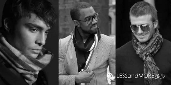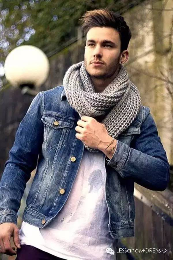 隨著男士圍巾圖案和材質的豐富,時尚男士們也開始熱衷看似普通的垂掛式,這種方式可以最大面積的展現圍巾的風貌。