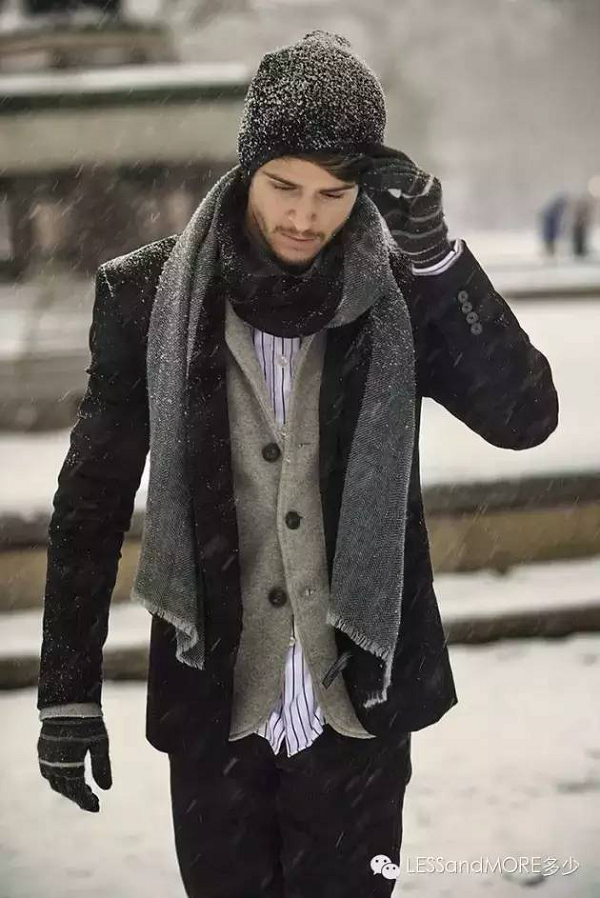 可以選擇顏色相對靚麗的圍巾作為全身搭配的點睛之筆。這種風格十分簡單,特別適合懶人:最簡單地將一邊圍巾搭在肩膀上就可以了。你也可以選擇近兩年最流行的大披肩,回頭率爆棚。聽說學會了圍巾的系法就可以在寒風中做一個安安靜靜的美男紙。