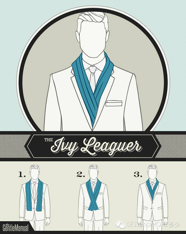 奧巴馬出席正式場合時,就非常喜歡在脖間垂掛著一條純色圍巾,并將圍巾交叉搭在西裝外套內,露出襯衫領及領帶,如果選用一些有色彩的圍巾又可以打破深色正裝的沉悶,且不失嚴肅與正式,這種系法也被稱為the Ivy League,也就是流行在常青藤名校中的一種圍巾系法。