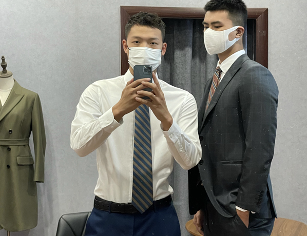 Less More精品店的資深量體師為您量體及試衣,定制更合身合體