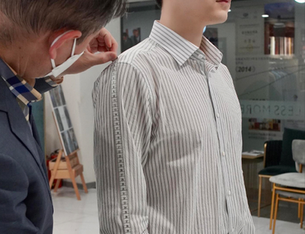Less More精品店的資深量體師為您量體及試衣,定制更合身合體