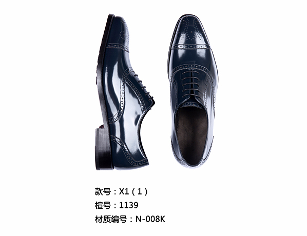 深藍色經典款皮鞋定制