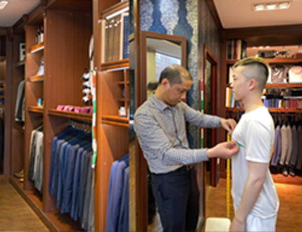 Less More精品店的資深量體師為您量體及試衣,定制更合身合體