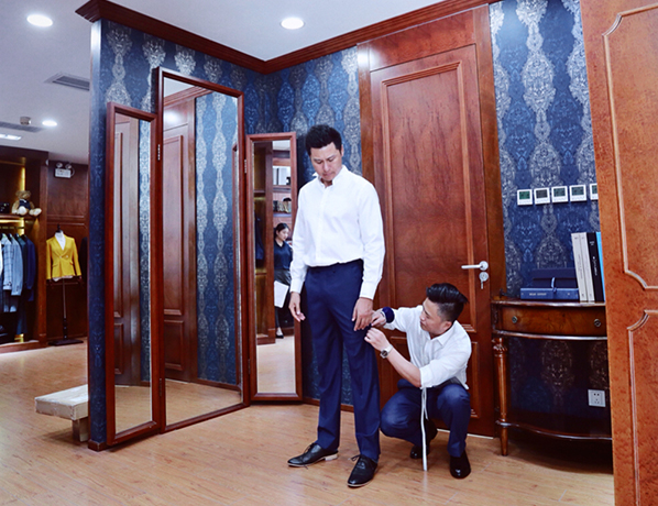 Less More精品店的資深量體師為您量體及試衣,定制更合身合體