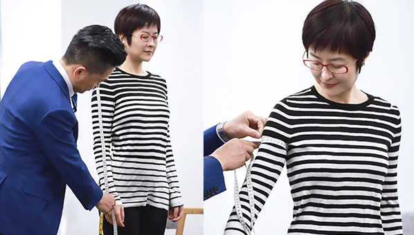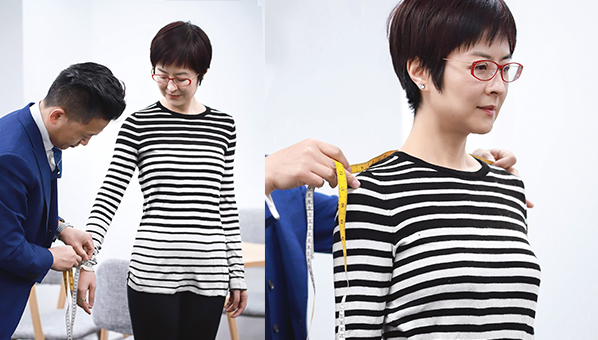 Less More精品店的資深量體師為您量體及試衣,定制更合身合體