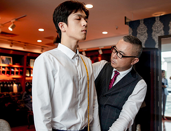Less More精品店的資深量體師為您量體及試衣,定制更合身合體