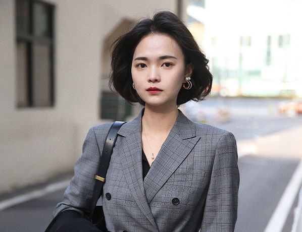 女士淺灰色網(wǎng)格雙排扣同款西服定制