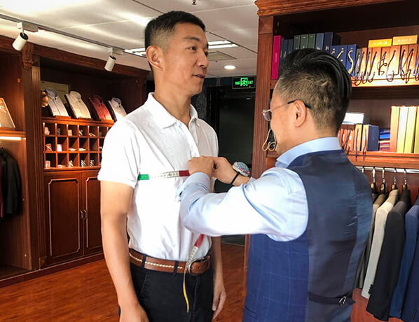 Less More精品店的資深量體師為您量體及試衣,定制更合身合體